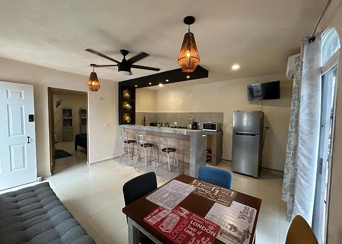 The self-catering facilities feature a kitchenette area with a kitchenware. Apartamento Av10 Playa is located within a 10-minute drive of Aeropuerto de Playa del Carmen airport. Guests can relax on a patio.